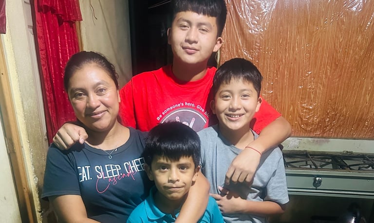 The Gómez family is composed of Edilzer Gómez (42), his wife Santos Maria Osirio (37), and their three sons: Alberto (17), Iker (11), and Estiben Mateo (8). They are a united family that shares many experiences and supports each other through everything. The Gómez family is proud of all the accomplishments they have achieved together. Looking ahead, they are excited about upcoming graduations and are focused on learning how to save money as a family, with the goal of buying a home in the near future.